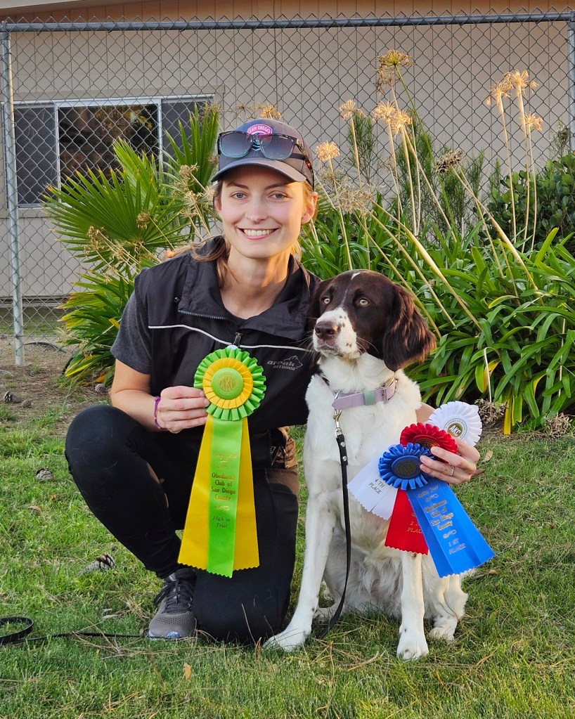 Iris is incredibly intelligent, athletic, playful, silly, sassy, active, tenacious, joyful, and loving. She’s a joy to have in our lives and brings such a wonderful happy energy into our home. In addition to being a beloved family member, Iris currently trains and/or competes in AKC Scent Work, Rally/Obedience Heelwork, Canicross, Conformation, and Fieldwork.